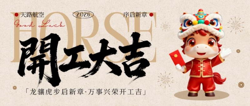 开工大吉,万事顺利!正月初十上午9点30分,天路航空举行2026年开工仪式。新春的喜悦与团圆暖意渐入回忆,我们正式携手踏入了充满希望与挑战的2026年。今天,是我们重新汇聚力量、并肩启程的日子。天路航空在此,谨向全体同仁致以最诚挚的祝福:开工大吉,万事如意!